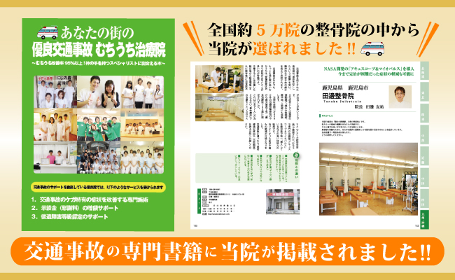 交通事故の施術でアキュースコープを使っている。鹿児島県初の導入でむちうちが治りやすい。